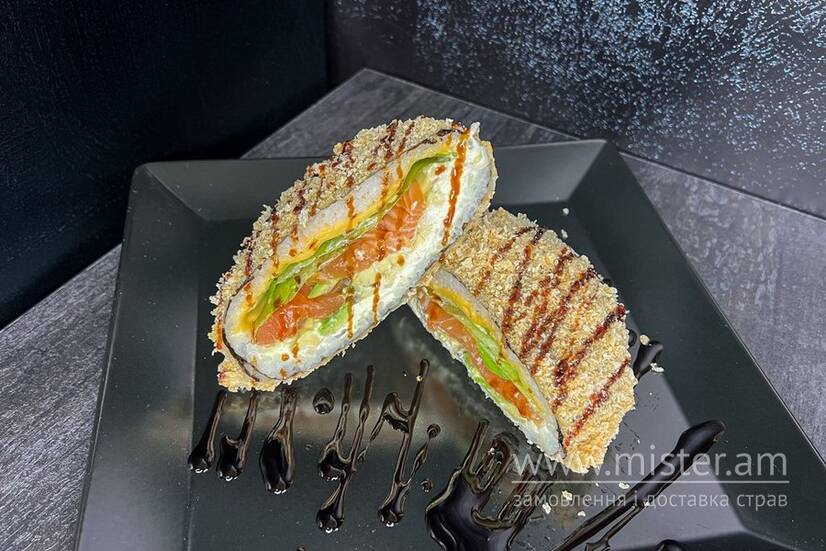 Рис, норі, лосось, авокадо, сир Філадельфія, сир чедер, салат айсберг, темпура.