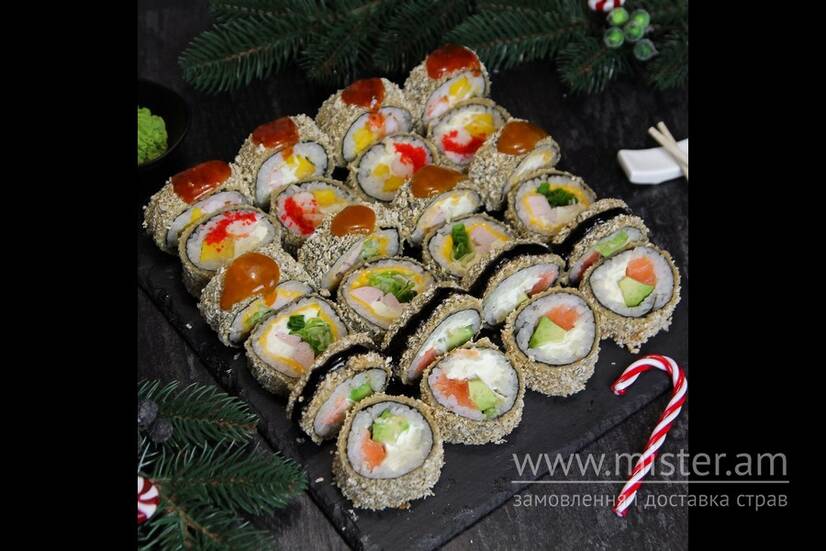 Темпура рол з креветкою, Темпура рол з лососем, Темпура рол з курячим філе су-від.