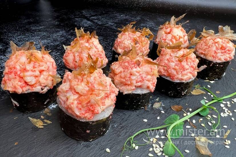 Рис, норі, креветка, сир Філадельфія, огірок, ікра.