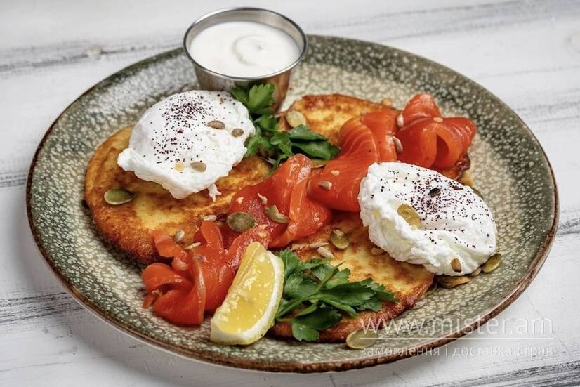 Чорноморка Картопляні деруни з лососем слабої солі та яйцем - пашот