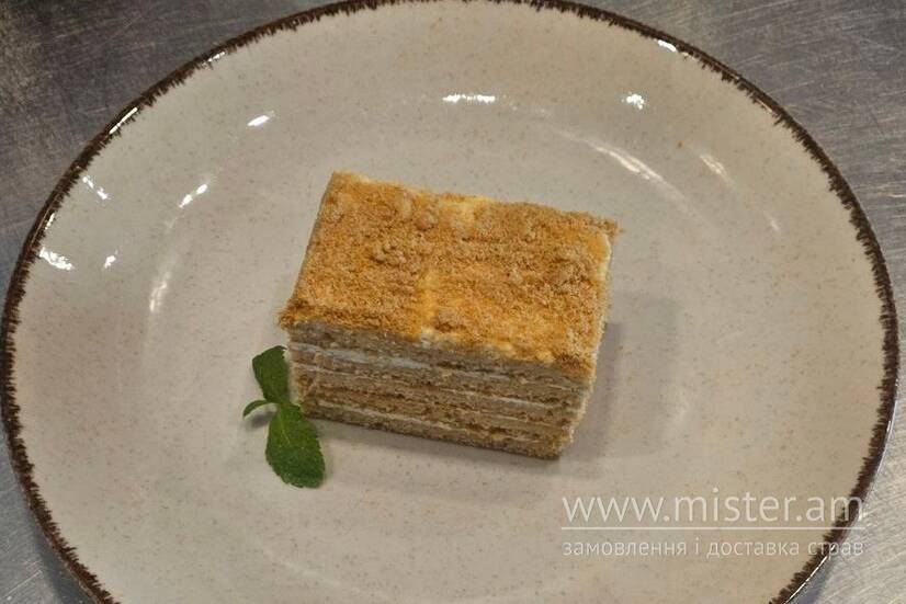 Класичний медовик, перемащений кремом на основі сметани, вершків, цукру та цукрової пудри.