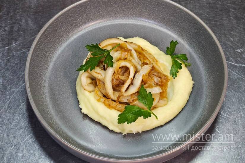 Піджарка з картопляним пюре з атлантичним кальмаром