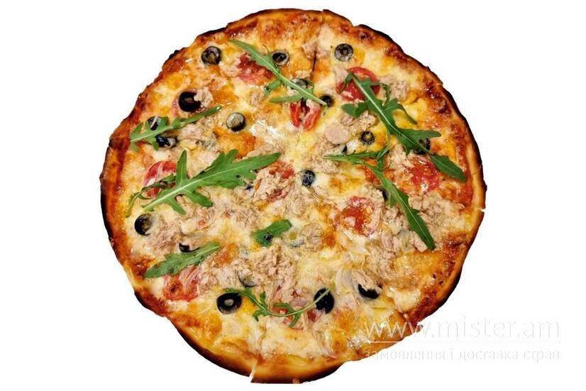 Тісто, соус сметанковий, салямі, помідор, шампіньйони, маслини, моцарелла, яйце.