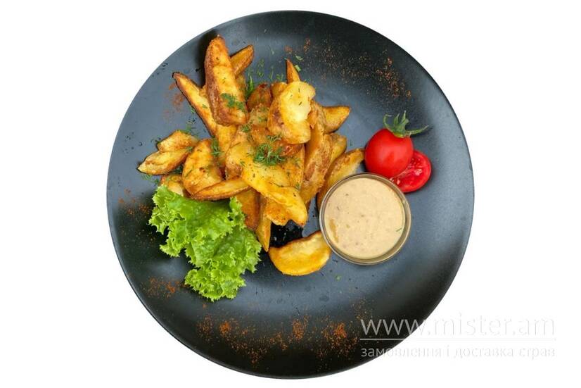 Картопля запечена з медово-гірчичним соусом.