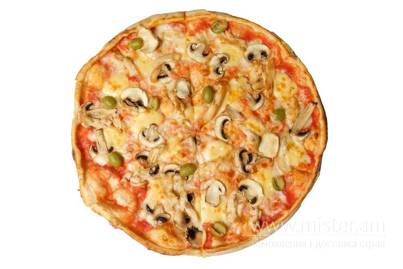 соус, моцарелла, гауда, оливки, філе запечене, печериці