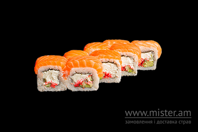 норі, сир філадельфія, червона тобіка, огірок, авокадо, лосось, кунжут, васабі замішане, імбир маринований