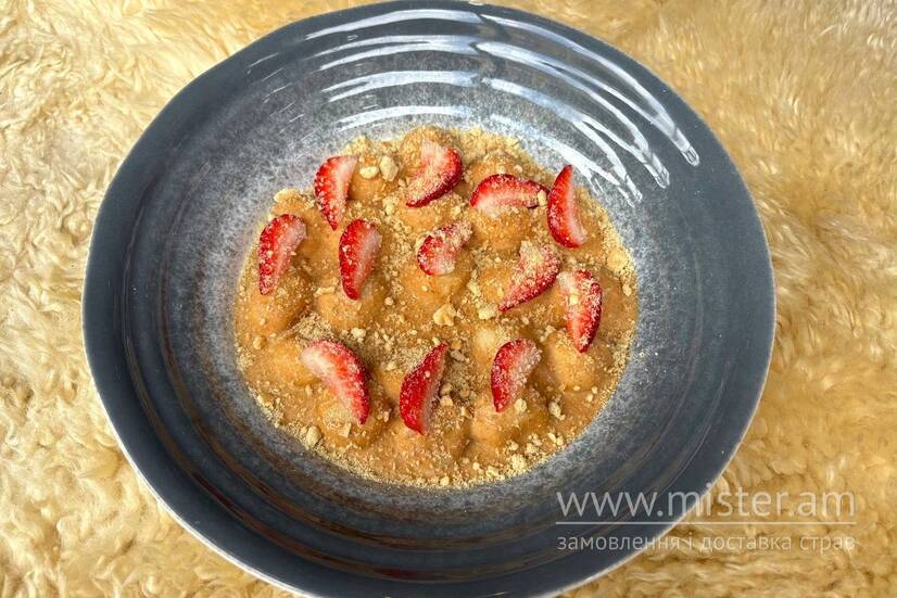 Вершки, карамельне згущене молоко, пряжене молоко, цукрова пудра, сезонні ягоди, печиво.