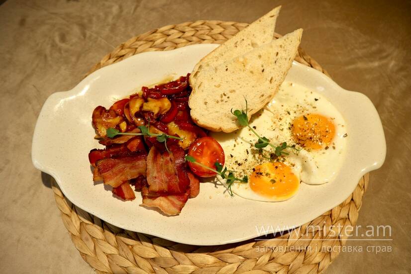 Дім 18 Яєчня з ковбасками та смаженими овочами