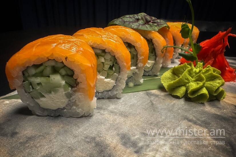 лосось, крем-сир, ікра лососева, огірок