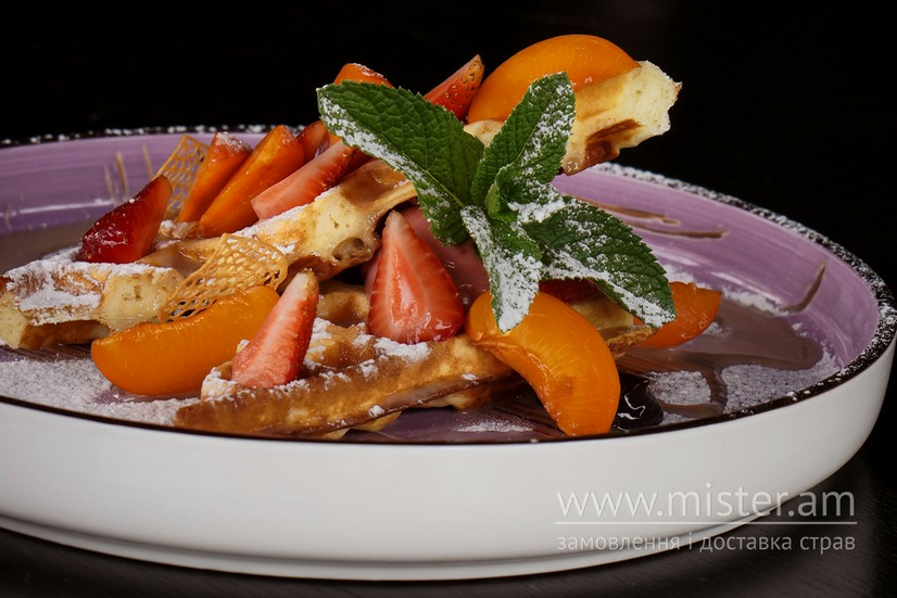 Солодкі бельгійські вафлі з ягодами та морозивом