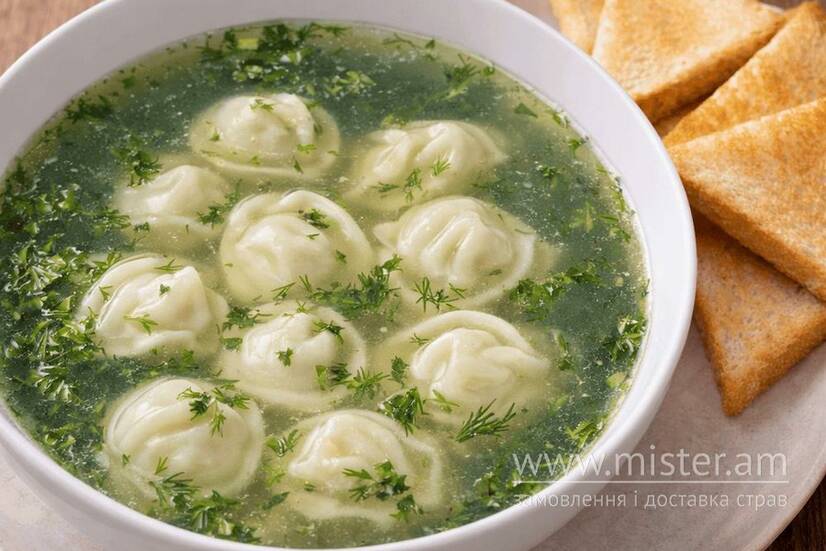Бульйон з домашніми пельменями