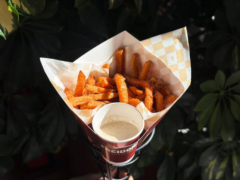 хрусткий батат фрі з морською сіллю та кунжутним соусом