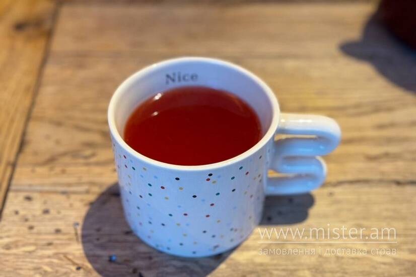 Натуральний чай із свіжого імбиру, лимону, малини та щіпки куркуми. За бажанням можна додати мед. Підтримує захисні сили організму, зігріває та має антибактеріальну дію.