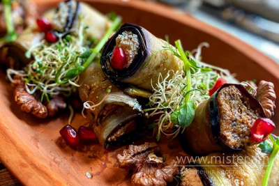 Джорджина Рулетики з баклажанів з горіховою пастою та з сирною начинкою