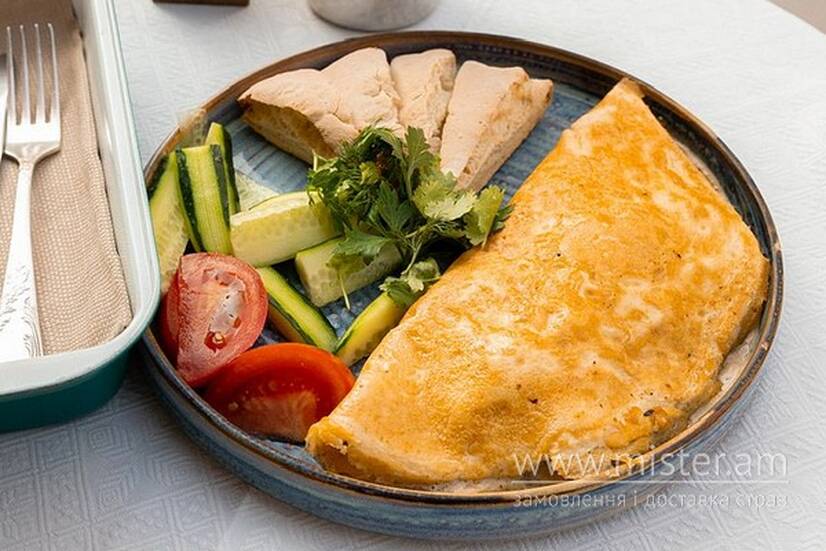 Омлет з курячим філе та грибами у соусі Чкмерулі