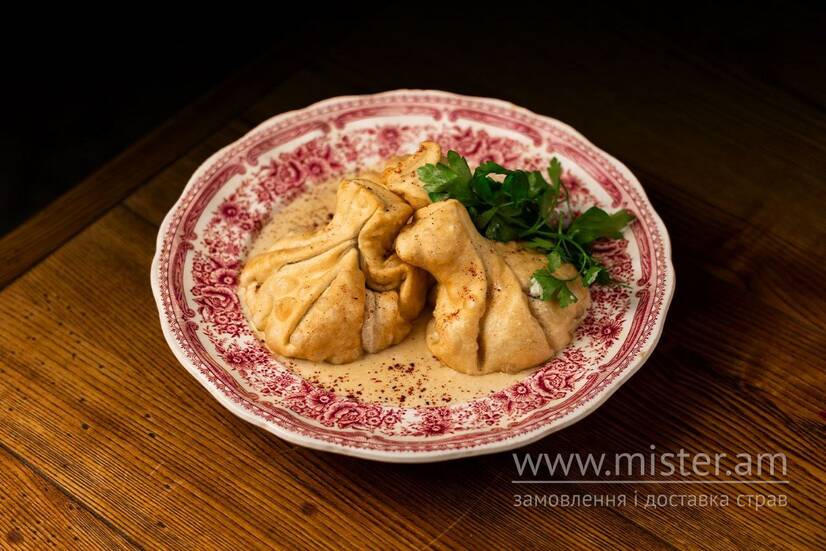 Хінкалі-чкмерулі з куркою та грибами