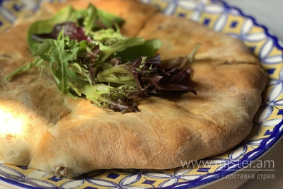 З рубленим та січеним м`ясом свинини, свіжою зеленню та ароматними спеціями.