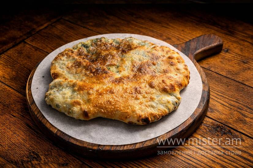 Хачапурі з ніжною начинкою з картоплі та шпинату, запечене до рум`яної скоринки.