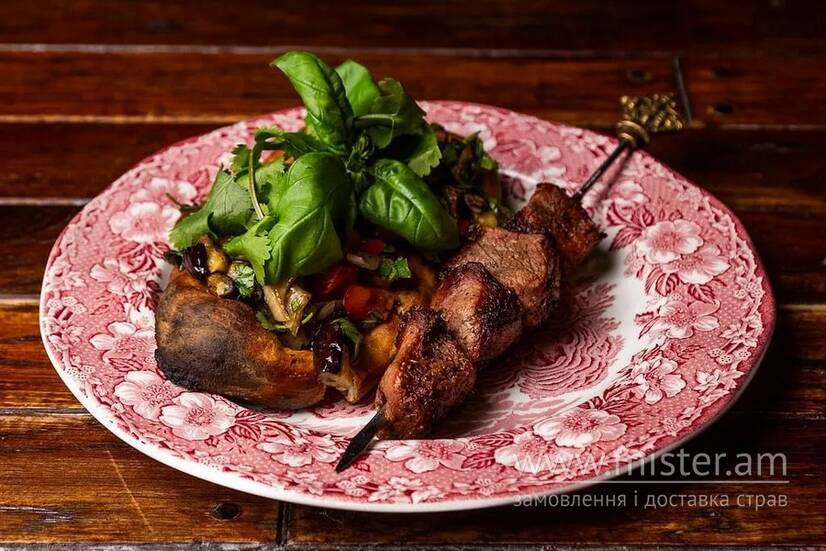 Вірменський шашлик, що готується зі свинини (шийна частина). Маринується з додаванням гранатового соку та духмяних спецій. Подається з нарізаними овочами, запеченими на вугіллі (болгарський перець, цибуля, печериці, кабачок, баклажан), а також з мацнакашем — традиційним вірменським хлібом.