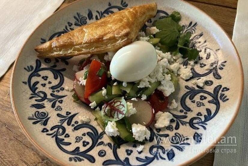 Подаємо з помідоровою заправкою та гуцульською бринзою.