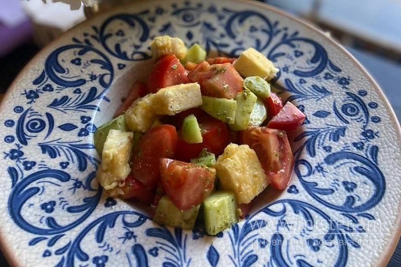 Салатка зі свіжих овочів та підсмаженої бринзи
