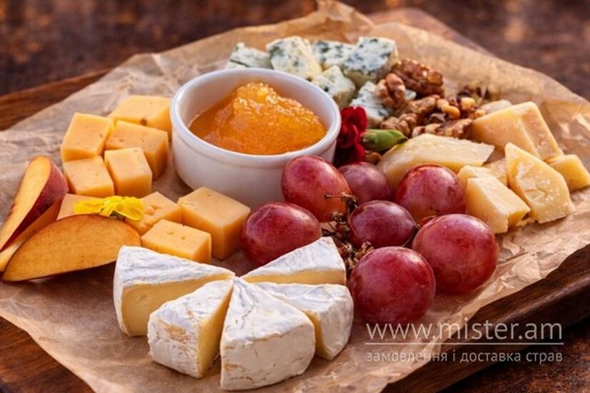 Cир з пажитником, горгонзола, пармезан, камамбер, фрукти, горіхи, мед.