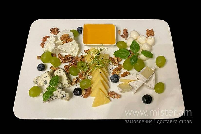 Моцарелла, горгонзола, пармезан, камамбер, фета, фрукти, горіхи, мед.