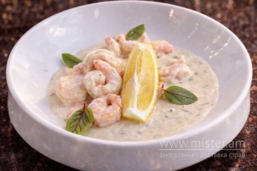 Креветки тигрові у сирному соусі