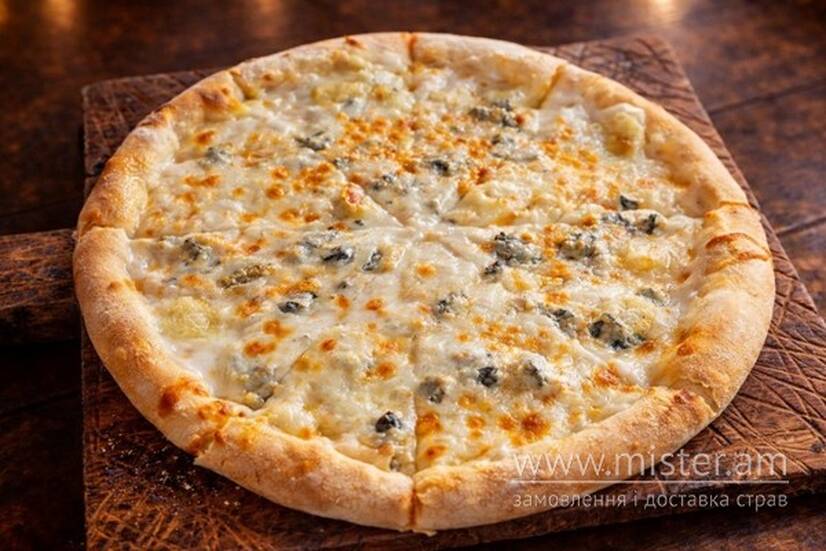 Сири камамбер, горгонзола, пармезан, моцарелла, вершковий соус.