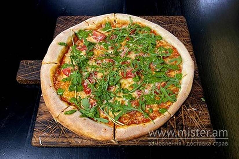 Помідори, помідори чері, пармезан, моцарелла, соус томатний, соус "Песто".