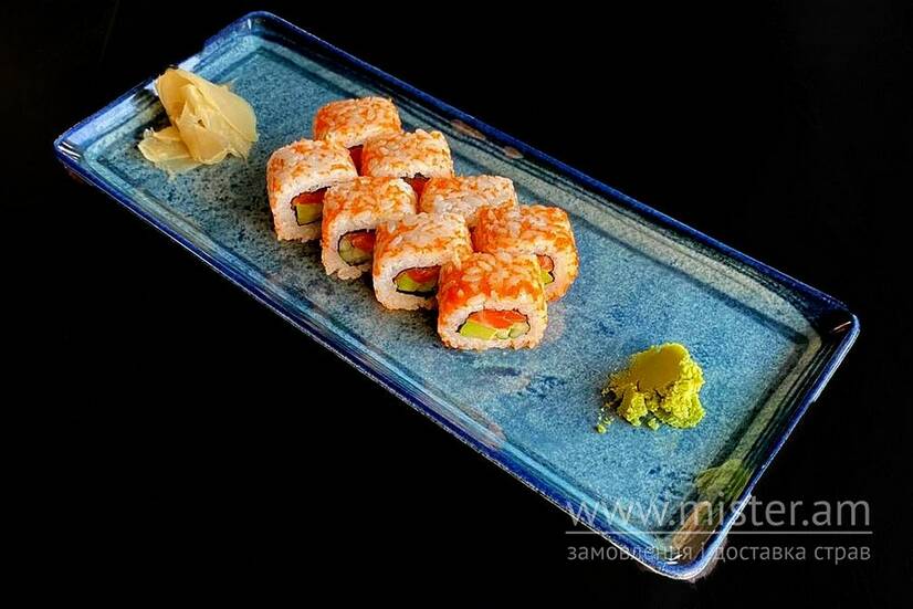 Лосось свіжий, авокадо, огірок, ікра тобіко.
