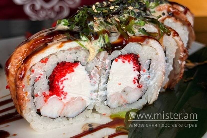 Креветка, вугор, ікра тобіко, хіяши, Філадельфія, кунжут, унагі.