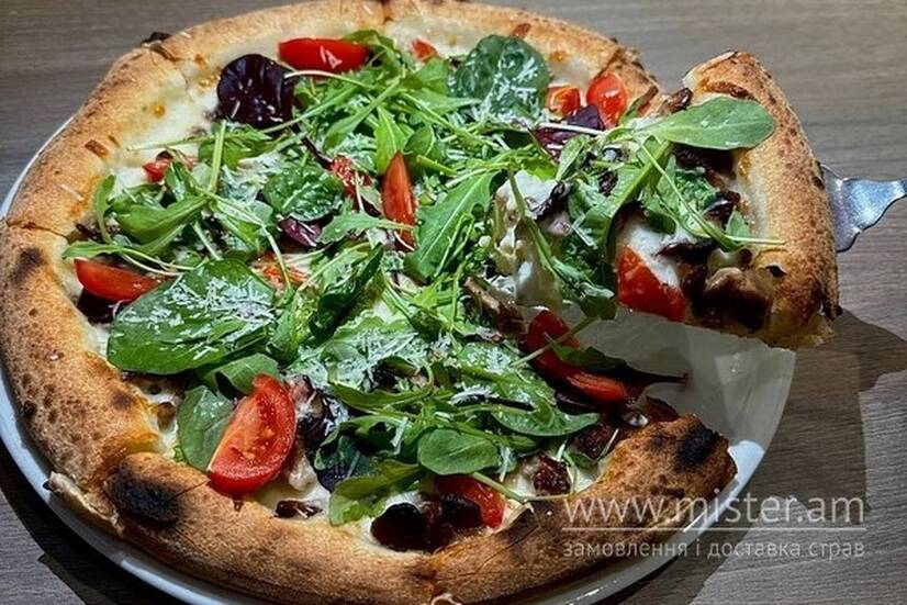 Телятина, лисички, томати, Пармезан, мікс салату.