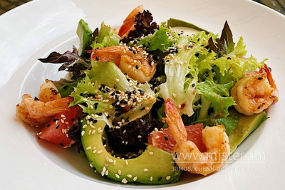 Салат з креветками-гриль, авокадо та грейпфрутом
