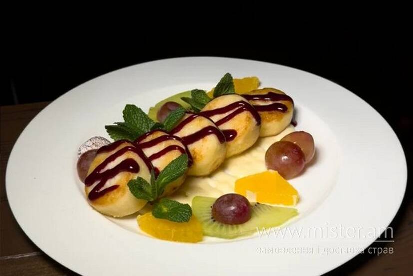 Домашній сир, заварний крем та ягідний джем з фруктами - неперевершений початок вашого дня.