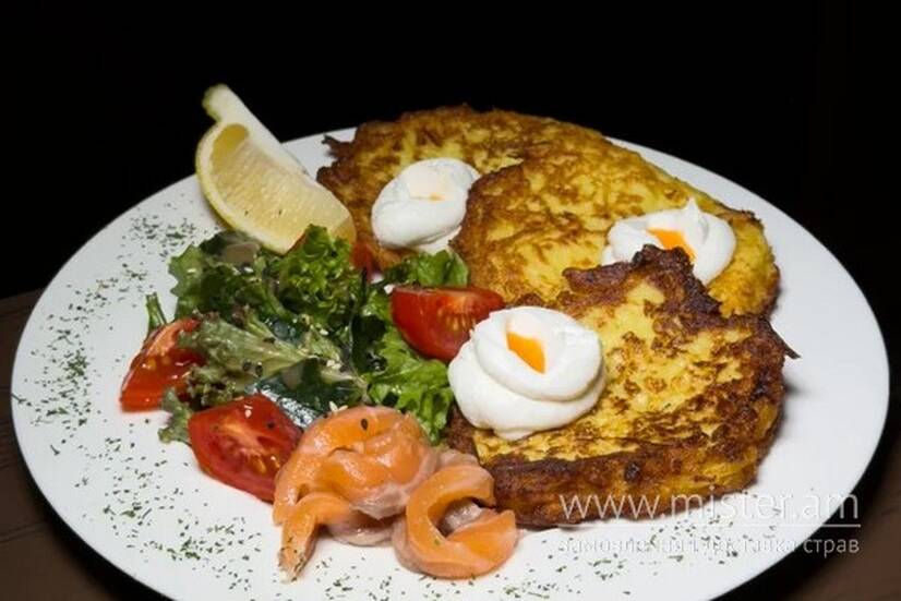 Historia Деруни з лососем та крем-сиром