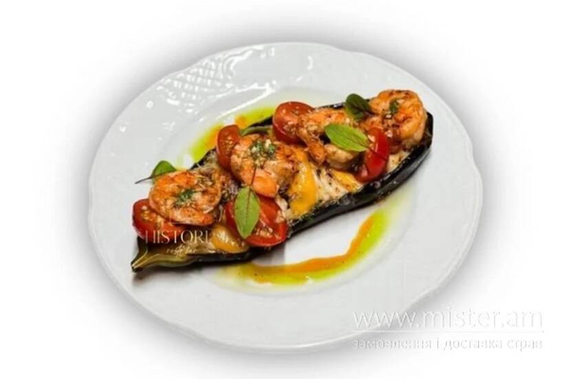 Соковиті криветки обсмаженні в цитрусовому соусі, томати чері, сир гауда, створюють неймовірний смак та насолоду страви.