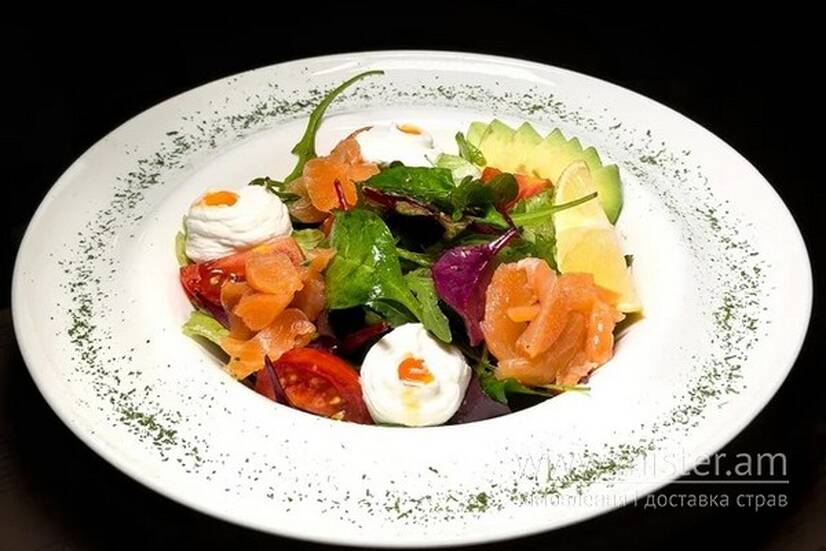 Слабосолений лосось власного виробництва, з крем-сиром та авокадо.