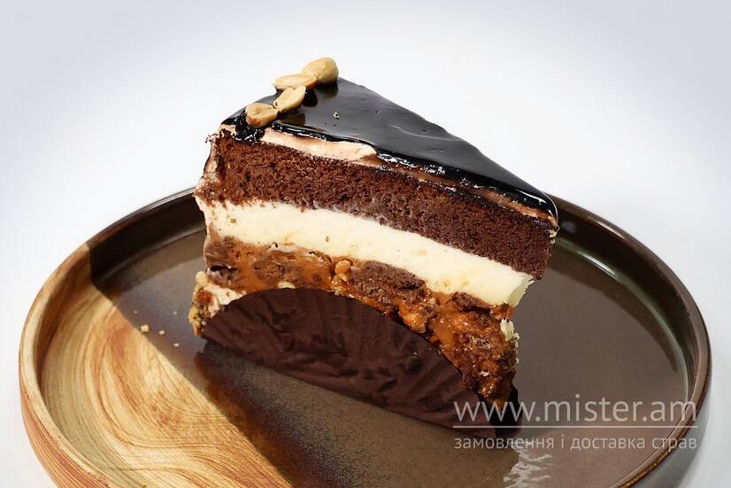 Шоколадні коржі з карамеллю та шоколадною крихтою, арахісом, крем-чізом.