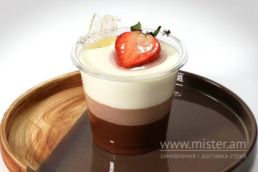 Ніжний мусовий десерт на основі білого, молочного та темного шоколаду.