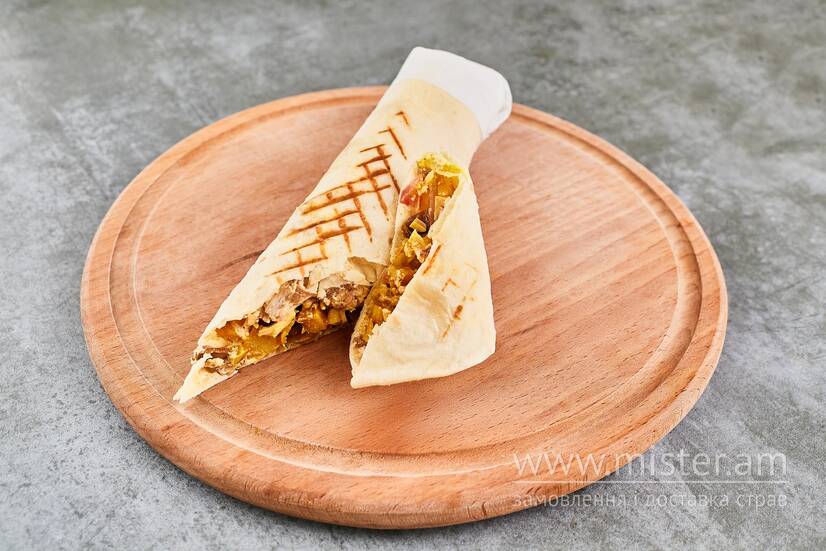 З телятиною, картоплею, пікантною морквою, соусом та сиром.