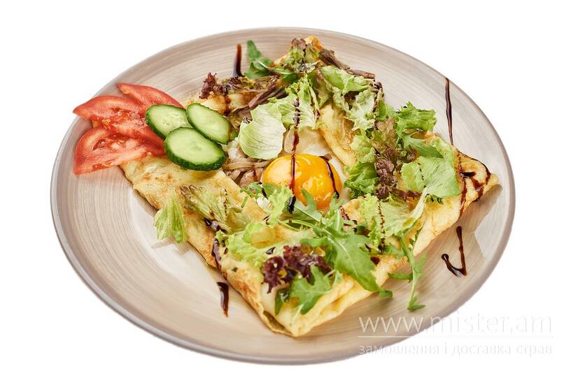 Моцарела, печериці, шинка,яйце, мікс-салат.