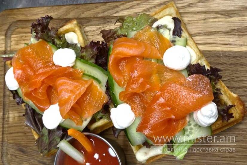Картотека Бельгійські вафлі з лососем та сиром Філадельфія
