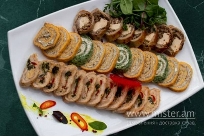 Свинний, курячий і сирний рулет.