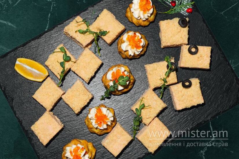 Cleo Rest Наполеон з лососем та еклерами з ікрою