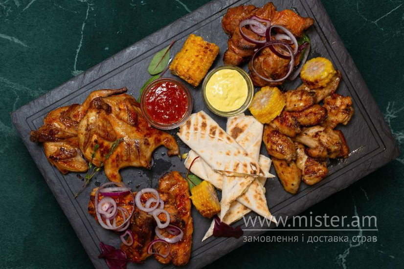 перепілка гриль, курячі крильця, свинний шашлик, реберця bbq, лаваш з сиром