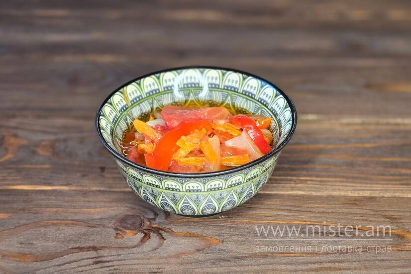 Овочева піджарка: цибуля, томат, перець болгарський, морква, олія.