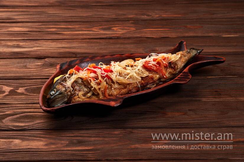 Корчма у Вакули "Вона того варта" форель смажена з овочами та сиром