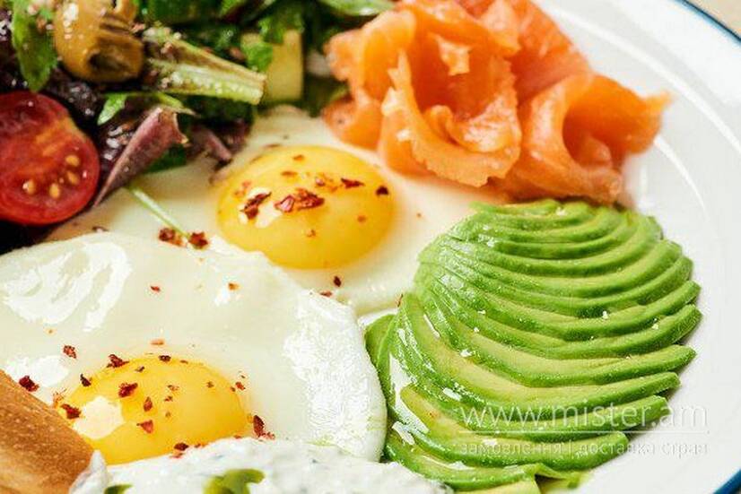 Великий сніданок з яєшнею та слабосоленим лососем