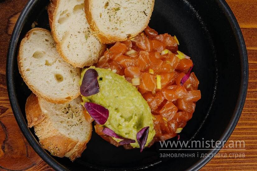 Кучері Тартар з лосося з гуакамоле та грінками
